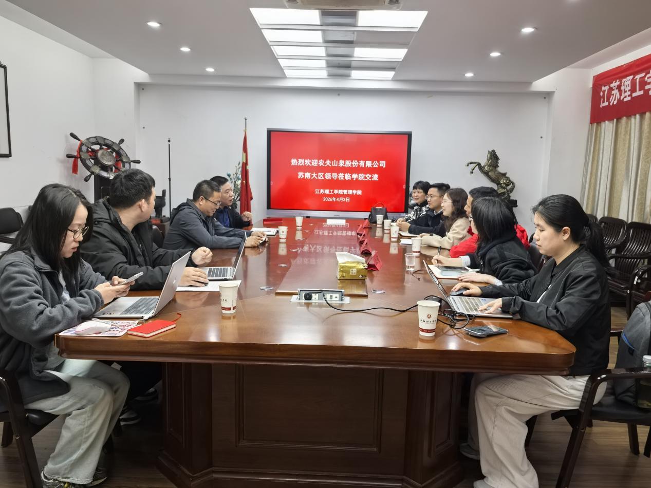 为深化校企协同育人,搭建市场营销专业校企合作数字化营销实践教学平台。4月3日下午,农夫山泉股份有限公司市场总部的经理邹娅雪、农夫山泉行销中心家庭渠道经理山燕、苏南大区市场部经理王琪、常州新北办事处销售经理俞馨等一行八人莅临我院,围绕 “农夫山泉杯”江苏理工学院市场营销专业技能大赛举办事宜开展专题交流座谈。管理学院副书记、副院长(主持工作)袁奋强, 学院党委委员、常州市直播电商产业协会会长杨晋等参加本次交流活动,双方就赛事组织、学生分组、产品与平台、营销活动策划案、线上线下营销活动举办和初决赛评选等核心问题进行了深入研讨交流。座谈会上,袁奋强对农夫山泉苏南大区领导的到访表示热烈欢迎,介绍了学院市场营销专业的学科建设、人才培养特色及实践教学成果。他指出,市场营销专业技能大赛是学院深化实践教学改革的重要载体,旨在以赛促学、以赛促练,提升学生的市场策划、品牌推广与实战应用能力。希望依托农夫山泉的行业资源与实战经验,将企业真实营销场景与赛事深度融合,让学生在竞赛中锤炼专业技能,实现理论知识与行业实践的精准对接。农夫山泉苏南大区领导对学院的办学理念与实践育人思路表示高度认可,介绍了企业的品牌发展、