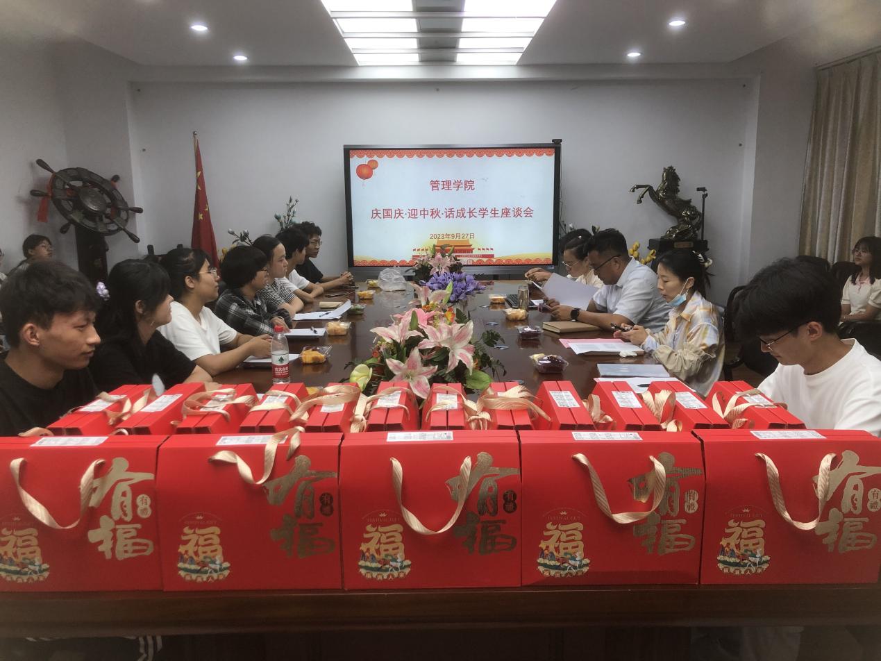 国庆将至,中秋同来。9月27日中午,为喜迎国庆、中秋双节的来临,我院组织2023级新生同学欢聚一堂,座谈交流,共话成长。学院党委副书记、副院长陈伟、23级新生辅导员及来自16个新生班的学生代表参会。