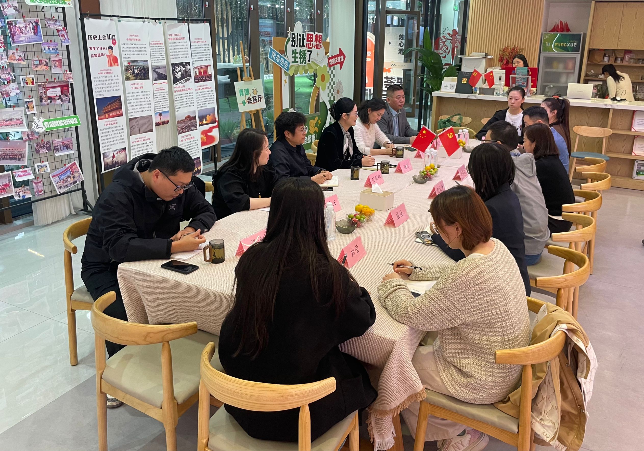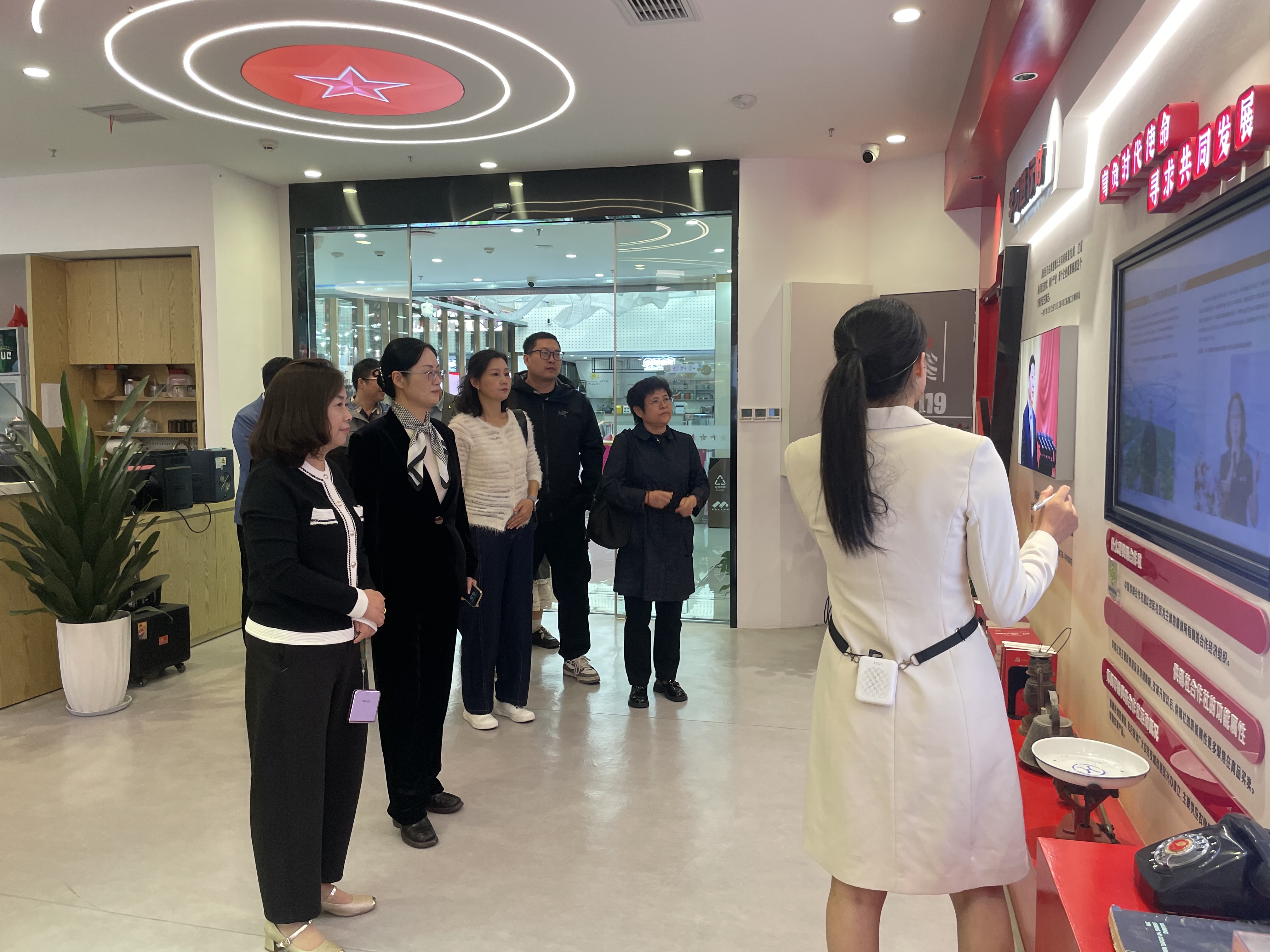 在易天集团党支部书记曹丽红的陪同讲解下,管理学院一行参观了企业党建文化馆,深入了解易天集团党建与业务融合的实践成果。随后,双方围绕“党建引领促发展,校企合作育英才”主题展开座谈交流,曹丽红首先介绍了易天集团的发展历程、主营业务布局及未来人才需求方向,重点提及在市场营销、人力资源管理等领域对高素质应用型人才的迫切需求。谢芳详细介绍了学院的专业设置、人才培养特色、师资力量及近年来毕业生就业去向,强调学院始终以 “服务产业发展、培养实用人才” 为目标,希望通过此次活动搭建长期稳定的校企合作桥梁。会上,在自由交流环节,双方围绕毕业生招聘、实习基地建设、产学研合作三大核心议题展开热烈讨论,并达成多项实质性共识。
