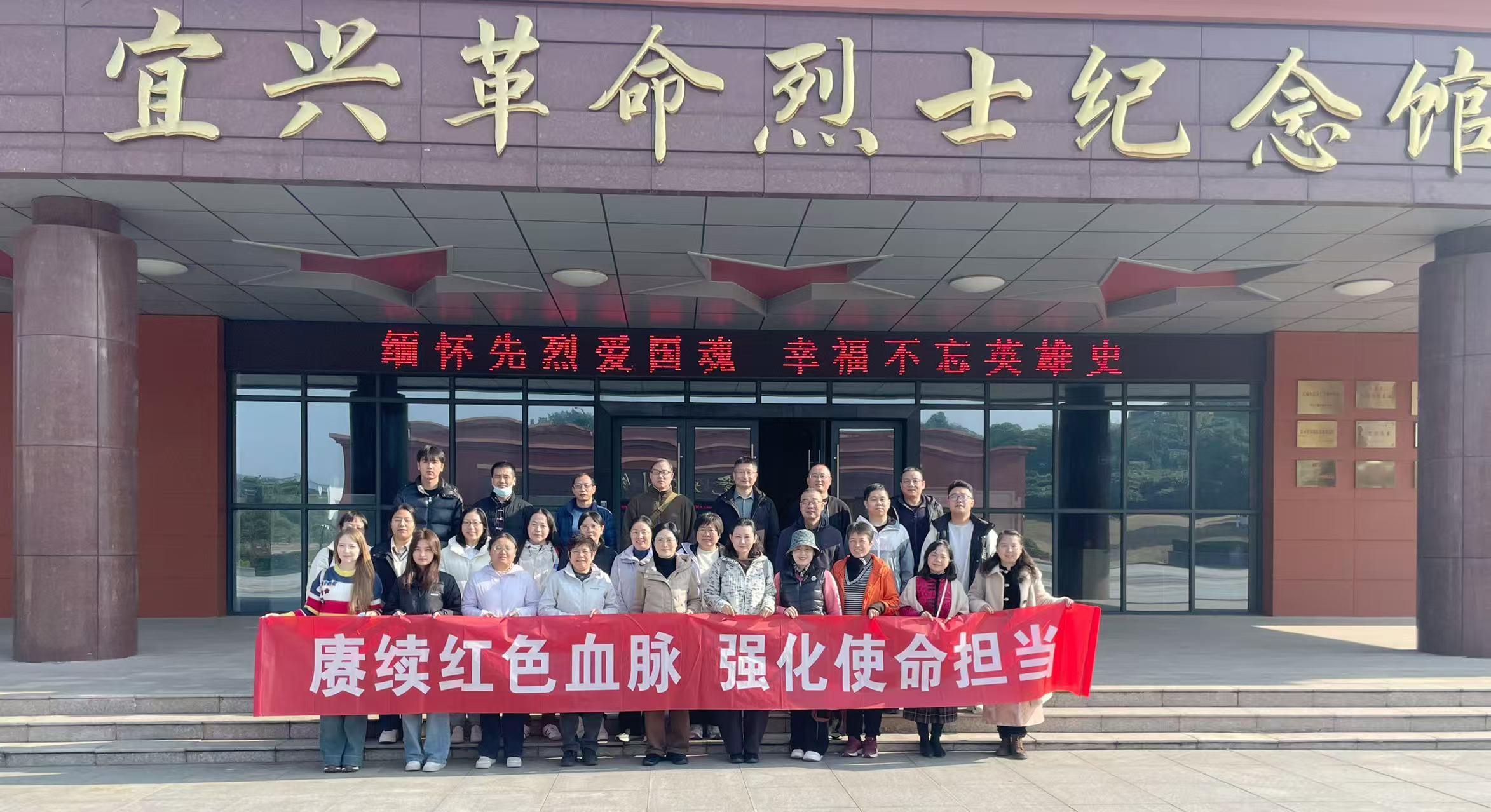 11月22日,我院党政领导班子带领各支部书记及师生党员代表一行,专程前往宜兴党史陈列馆与宜兴市革命烈士纪念馆,开展“赓续红色血脉 强化使命担当”主题党日活动,在红色教育中筑牢信仰之基,凝聚奋进力量。