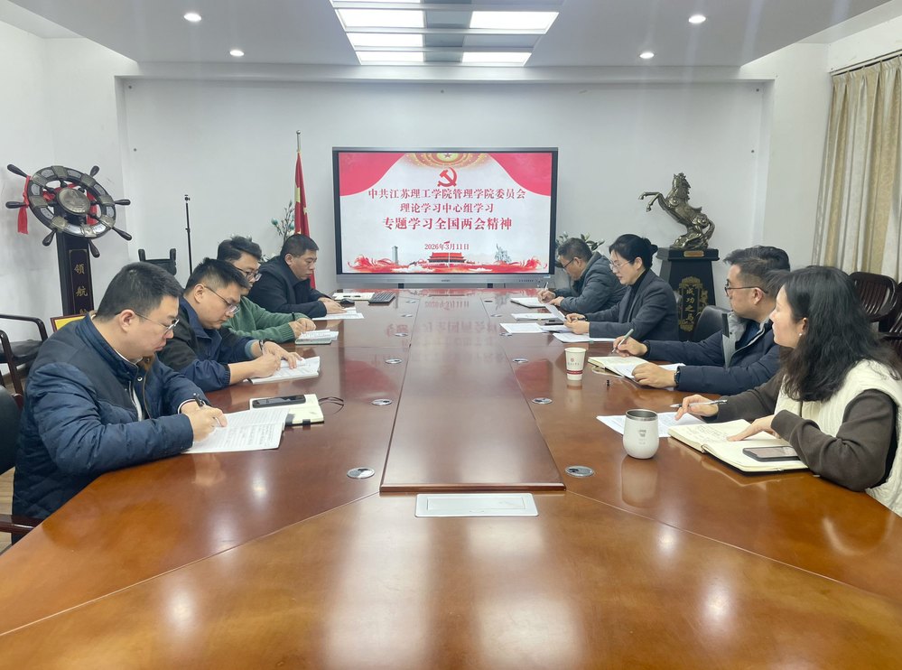3月11日下午,管理学院党委理论学习中心组在2号楼211会议室召开专题学习会,深入学习贯彻2026年全国两会精神。会议由学院党委书记谢芳主持,学院党委理论学习中心组成员参加学习。